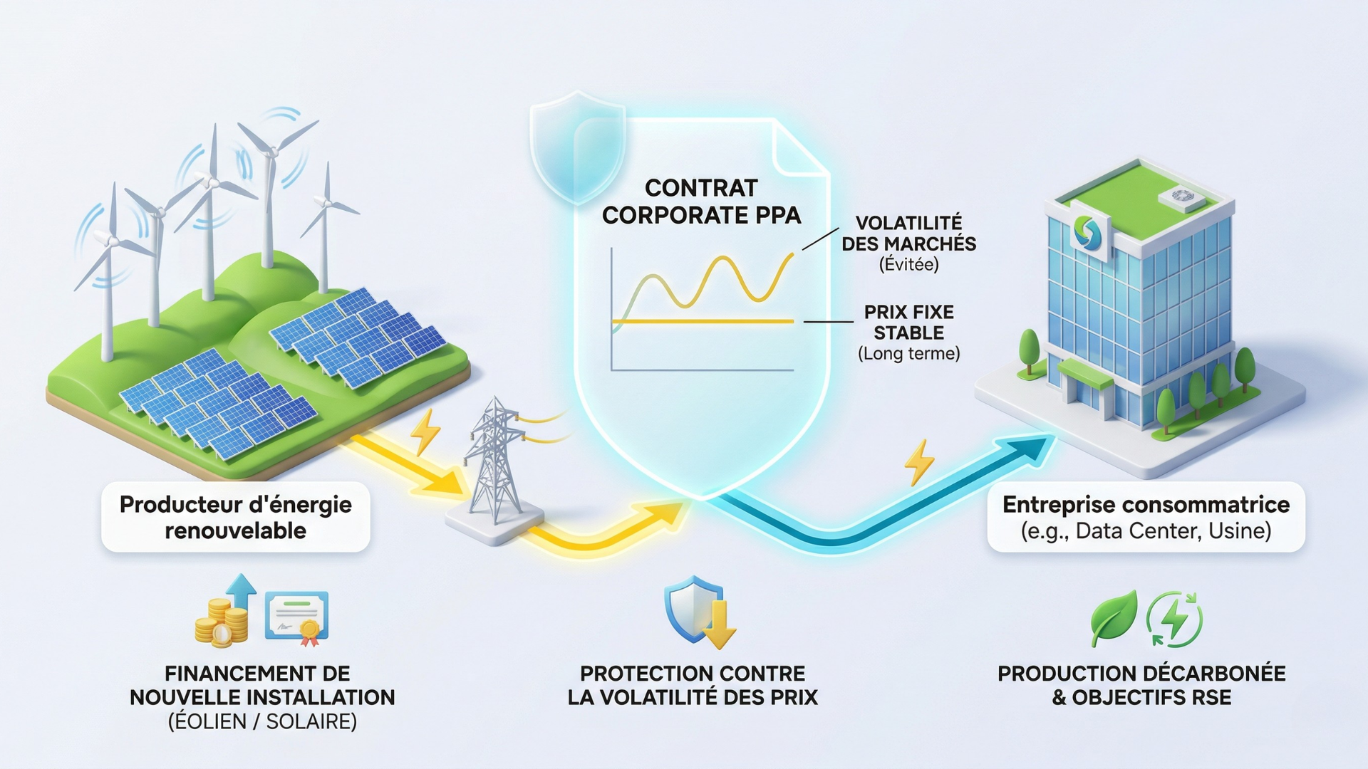 Ce contexte imprévisible et exigeant pousse les entreprises à chercher des solutions d'achat d'énergie plus stables et plus durables.